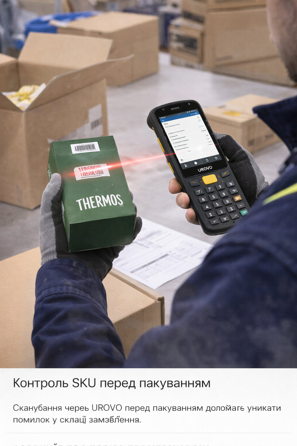 Окрему цінність UROVO дає в сценаріях, де важлива подвійна перевірка SKU. У e-commerce контроль не закінчується на відборі з комірки. Часто потрібно додатково підтвердити товар перед пакуванням, перевірити комплекти, набори або замовлення з кількох схожих позицій. Саме тому перевірка перед пакуванням — критичний етап для тих компаній, які хочуть реально зменшити кількість претензій від клієнтів. Якщо відбір підтверджений сканером, а потім товар ще раз перевіряється перед упаковкою, ризик пересорту помітно знижується навіть у періоди великого навантаження.