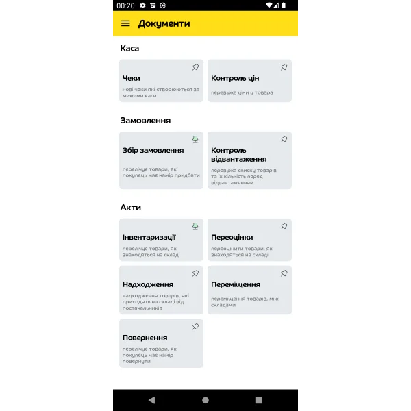 Дозволяє виконувати всі складські операції: приймання, відвантаження, інвентаризацію, переміщення, роботу з комірками, серіями та партіями — повністю з термінала без ПК.